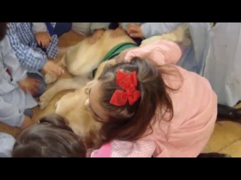 Dentro do programa de apoio e reforzo educativo asistido por cans que está a levar a cabo o Concello de Vigo no Plan de Saúde veu a visitarnos Bronce coa súa monitora Ana.